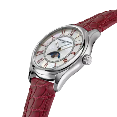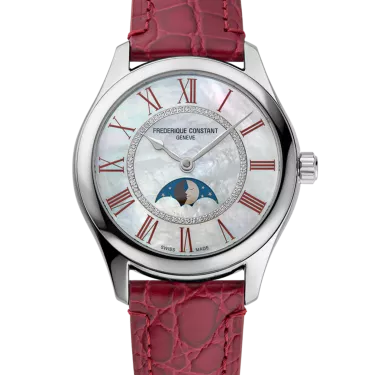 The Classics Elegance Luna is the latest timepiece to be released in Frederique Constant’s Classics collection. In a major first for the Maison, the timepiece’s Moon Phase has been designed by the daughter of the Manufacture’s head of R&D. The moon in question is evocative of romance and intimacy: two half-moons embrace amid a mother-of-pearl dial housed in a 36-millimetre steel case.