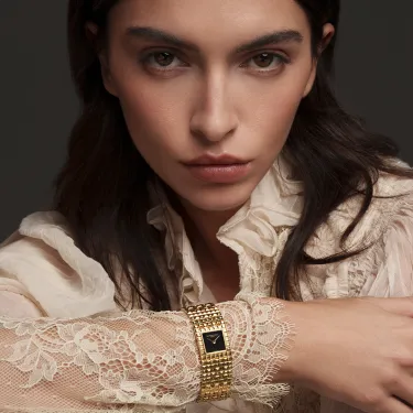 The Manchette is now back in the collection under the name Classics Manchette. It is first and foremost a bracelet that tells the time. Supple and slender, it is composed of seven links. Firmly secured to the wrist to withstand the turmoil of the dance floor, it features an integrated, invisible folding clasp.