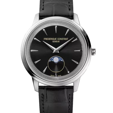 The new Classics Moneta Moonphase is a creation whose flange is inspired by the fluted edge of a coin, hence its name. Offered in a 37 mm steel case, the piece revisits the design of the fluted bezel, a great Geneva classic, in favor of a more original, atypical timepiece. Available with a blue, black, or silver dial, it features the traditional finishes of fine watchmaking while remaining affordable thanks to a quartz movement with a 5-year battery life.
