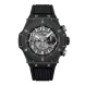 Microblasted and Polished Black Ceramic case, Microblasted and Polished Black Ceramic 6 H-Shaped Titanium Screws bezel, 100m or 10 ATM water resistance, Sapphire with Anti-reflective Treatment crystal, Matte Black Skeleton Dial, HUB1280 UNICO Manufacture Self-winding Chronograph Flyback Movement with Column Wheel, 72 Hours power reserve, Black Structured Lined Rubber Straps and Black Ceramic and Black-plated Titanium Deployant Buckle Clasp.