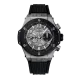 Satin-finished and Polished Titanium case, Satin-finished and Polished Black Ceramic with 6 H-shaped Titanium Screws bezel, 100m or 10 ATM water resistance, Sapphire with Anti-reflective Treatment crystal, Matte Black Dial, HUB1280 UNICO Manufacture Self-winding Chronograph Flyback Movement with Column Wheel, 72 Hours power reserve, Black Lined Rubber Straps and Titanium Deployant Buckle Clasp.