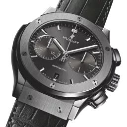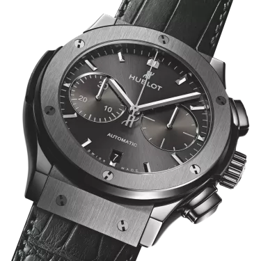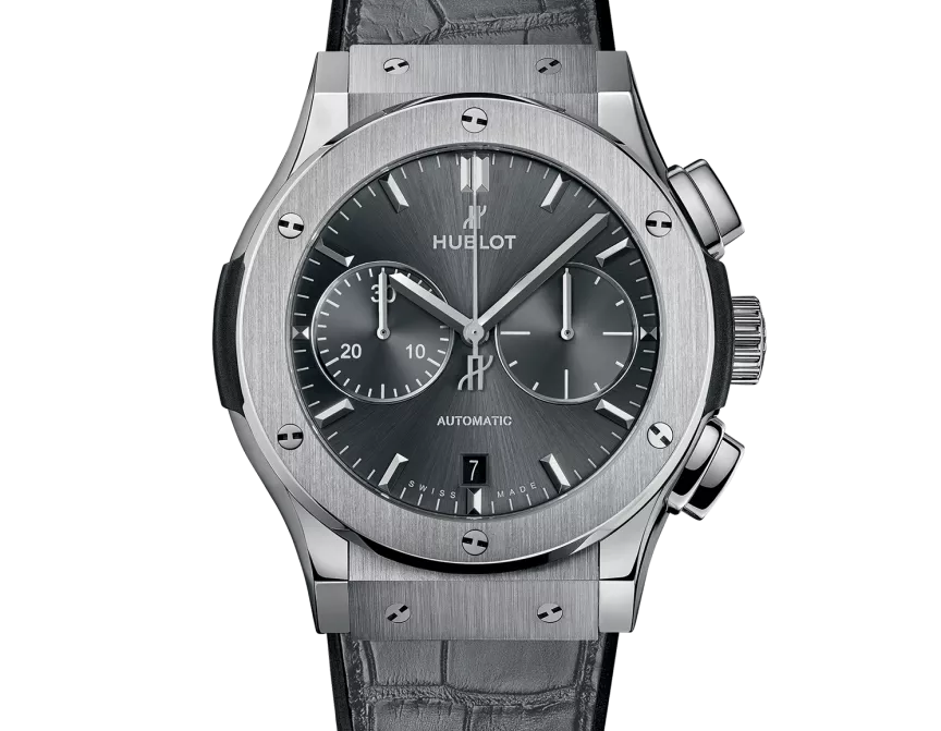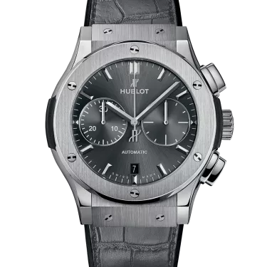 Satin-finished and Polished Titanium Case. Satin-finished and Polished Titanium Bezel; Sapphire with Anti-reflective Treatment; Grey Sunray Satin-finished Dial; Black Rubber and Grey Straps. Stainless Steel Deployant Buckle Clasp, Self-winding Chronograph Movement and 42 Hours Power Reserve and 50m or 5 ATM Water Resistance.