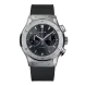 Hublot Classic Fusion Racing Grey Titanium, Satin-finished and Polished Titanium case, Satin-finished and Polished Titanium with 6 H-shaped Titanium Screws bezel, 50m or 5 ATM water resistance, Sapphire with Anti-reflective Treatment, Satin-finished Gray Sunray dial, HUB1143 Self-winding Chronograph Movement, 42 Hours power reserve, Gray Lined Rubber Straps and Stainless Steel Deployant Buckle Clasp.