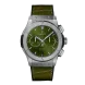 Hublot Classic Fusion Titanium Green 42 mm Satin-finished and Polished Titanium case; Satin-finished and Polished Titanium bezel with 6 H-shaped Titanium Screws; Sapphire with Anti-reflective Treatment; Satin-finished Green Sunray dial; Black Rubber and Green Alligator Straps; Stainless Steel Deployant Buckle Clasp; HUB1153, Self-winding and Chronograph Movement; 42 Hours power reserve and 50m water resistance.
