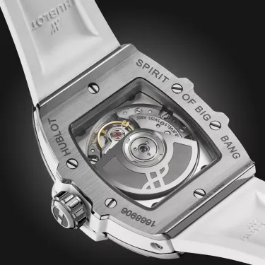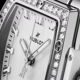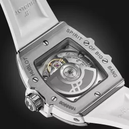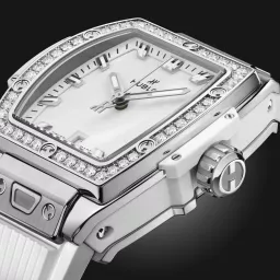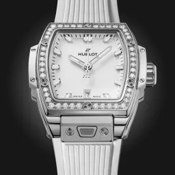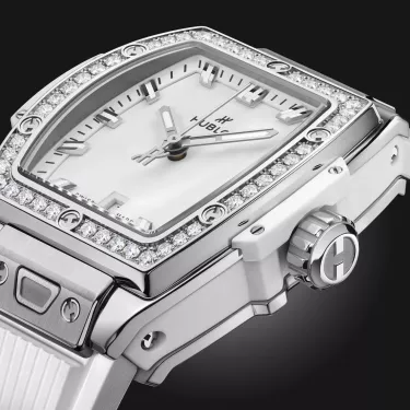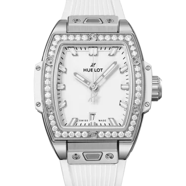 Hublot Spirit of Big Bang Steel White Diamonds 32mm, Satin-finished and Polished Stainless Steel case, Polished Stainless Steel Set with 44 diamonds bezel, 100m or 10 ATM water resistance, Sapphire with Anti-reflective Treatment crystal, Matte White Dial, HUB1120 Self-winding Movement, 40 Hours power reserve, White Structured Lined Rubber Straps and Stainless Steel Deployant Buckle Clasp.