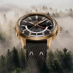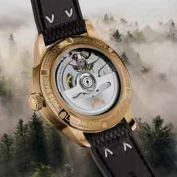 40mm Polished, satin finished bronze case on the top, stainless steel case back with a bronze PVD coating, Double anti-reflective, scratch-proof, box type sapphire glass on top, open case back featuring the engraving “LIMITED EDITION ONE OF 300”, with scratch-proof sapphire glass, Screw-down crown with NORQAIN logo, Engraved and satin finished bronze NORQAIN plate on the left side of the case. Black Perlon Rubber Strap – pin buckle.