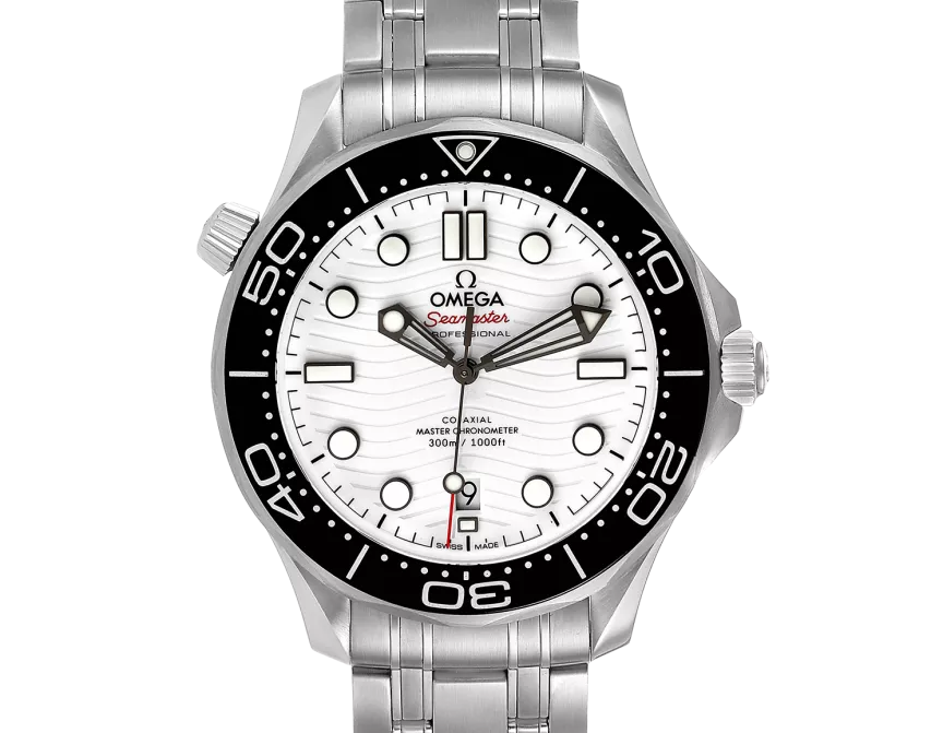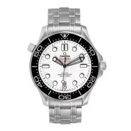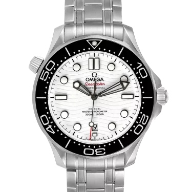 Since 1993, the Seamaster Professional Diver 300M has enjoyed a legendary following. Today’s modern collection has embraced that famous ocean heritage and updated it with OMEGA’s best innovation and design. This 42 mm model is crafted from stainless steel and includes a black ceramic bezel with a white enamel diving scale. The dial is polished white ceramic and features laser-engraved waves and Seamaster highlighted in red. The polished, blackened skeleton hour and minute hands are filled with white Super-LumiNova. The seconds hand features a varnished red tip. The watch is presented on a polished-brushed stainless steel bracelet and is driven by the OMEGA Master Chronometer Calibre 8800, which can be seen through the sapphire-crystal on the wave-edged caseback.