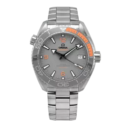 This model, with its scratch-resistant sapphire crystal, features a sand-blasted grade 5 titanium dial with Arabic numerals and a date window at the 3 o’clock position. Mounted on the 43.5 mm grade 5 titanium case, is the world's premiere grey silicon nitride ceramic bezel with orange rubber. The diving scale of the bezel is crafted with Liquidmetal™. Other features include an alveol screw-in caseback and a grade 5 titanium bracelet with patented extendable foldover clasp. The OMEGA Seamaster Planet Ocean 600M Master Chronometer is water resistant to 600 metres / 2000 feet / 60 bar, and has a helium-escape valve. The OMEGA Master Chronometer calibre 8900 at the heart of this timepiece can be seen through the transparent caseback. To achieve Master Chronometer status, it has passed the 8 rigorous tests set by METAS (The Swiss Federal Institute of Metrology).