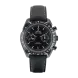 This 44.25 mm model has a polished and brushed ceramic casebody and a brushed ceramic bezel with a tachymeter scale in Super-LumiNova. It is distinguished by the Super-LumiNova that coats the indexes on its matt black ceramic dial. The matt black sub-dials have varnished hands. The "Pitch Black" is presented on a black leather strap with ecru stitching and a ceramic foldover clasp. At its heart is the OMEGA Co-Axial calibre 9300.