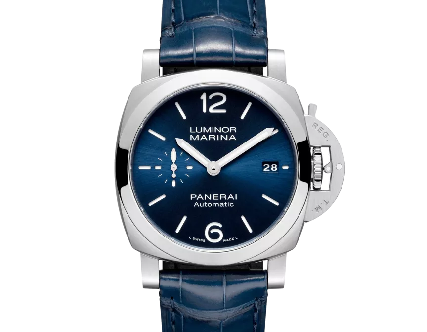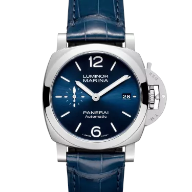 Panerai Luminor Quaranta reference PAM01370, stainless steel, 40 mm case, crown with bow clasp, waterproof up to 10 atm, sapphire crystal, horn distance 22 mm, automatic Cal. P.900, hours, minutes, small seconds, date, blue dial, luminous hands and markers, blue leather strap and a blue rubber strap with pin buckle. Secondary strap included - Dark Blue Rubber Strap.