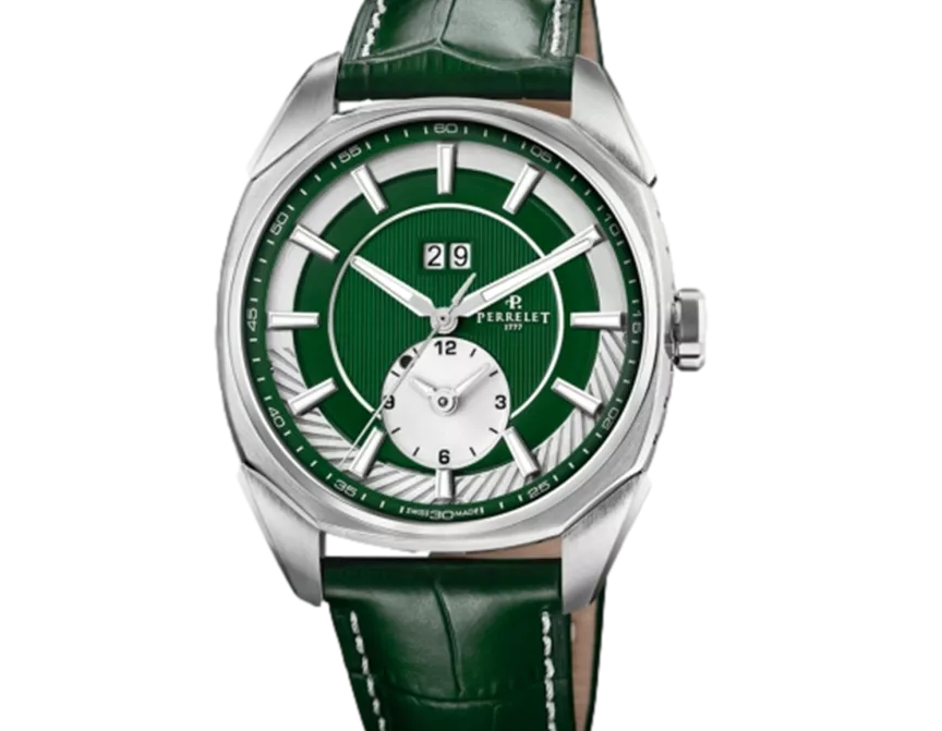 An innovative aesthetic and technological new take which gives rise to a new timepiece. Guided by creativity and the desire to explore new technological frontiers in watchmaking, the technical team at Perrelet gave rise to the new LAB PERIPHERAL Dual Time Big Date. This timepiece remains loyal to the values and DNA of the brand with its signature “Luxury in movement”. This latest creation offers a discreet and refined animation on the dial and welcomes a new and contemporary casual-chic style in Perrelet’s collections.