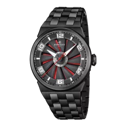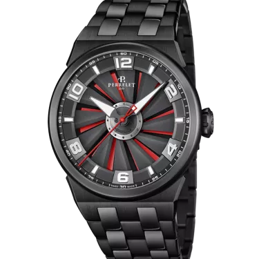 The Turbine collection celebrates its 10th anniversary in 2019. To commemorate this important landmark, Perrelet releases the TURBINE EVO with a completely overhauled design and a new in-house movement with the caliber P-331-MH. Turbine EVO is housed in a new sport-chic case which now offers a stainless steel bracelet. For the first time in its ten-year history, all the movements which equip this collection are COSC certified, testifying high precision in timekeeping after having undergone a series of tests. Functions central hands indicating hours, minutes and seconds; 5 ATM; Black, red under-dial and Deployment buckle. In-house automatic movement Calibre P-331-MH, 42hours power reserve.