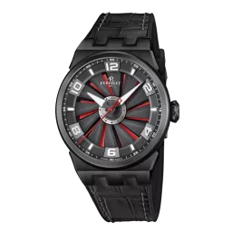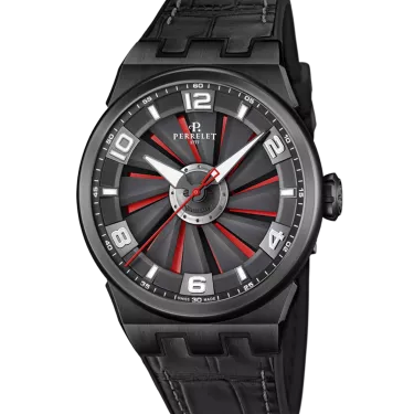 The Turbine collection celebrates its 10th anniversary in 2019. To commemorate this important landmark, Perrelet releases the TURBINE EVO with a completely overhauled design and a new in-house movement with the caliber P-331-MH. Turbine EVO is housed in a new sport-chic case which now offers a stainless steel bracelet. For the first time in its ten-year history, all the movements which equip this collection are COSC certified, testifying high precision in timekeeping after having undergone a series of tests. Functions central hands indicating hours, minutes and seconds; 5 ATM; Black, red under-dial and Deployment buckle. In-house automatic movement Calibre P-331-MH, 42hours power reserve.