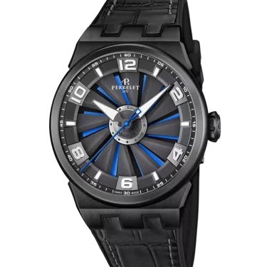 The Turbine collection celebrates its 10th anniversary in 2019. To commemorate this important landmark, Perrelet releases the TURBINE EVO with a completely overhauled design and a new in-house movement with the caliber P-331-MH. Turbine EVO is housed in a new sport-chic case which now offers a stainless steel bracelet. For the first time in its ten-year history, all the movements which equip this collection are COSC certified, testifying high precision in timekeeping after having undergone a series of tests. Functions central hands indicating hours, minutes and seconds; 5 ATM; Black, blue under-dial and Deployment buckle. In-house automatic movement Calibre P-331-MH, 42hours power reserve.