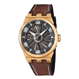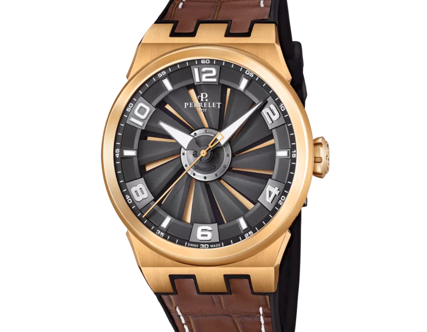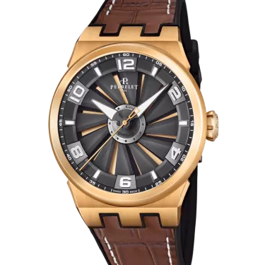 The Turbine collection celebrates its 10th anniversary in 2019. To commemorate this important landmark, Perrelet releases the TURBINE EVO with a completely overhauled design and a new in-house movement with the caliber P-331-MH. Turbine EVO is housed in a new sport-chic case which now offers a stainless steel bracelet. For the first time in its ten-year history, all the movements which equip this collection are COSC certified, testifying high precision in timekeeping after having undergone a series of tests. Functions central hands indicating hours, minutes and seconds; 5 ATM; Black, Rose gold 4N under dial and Deployment buckle. In-house automatic movement Calibre P-331-MH, 42hours power reserve.