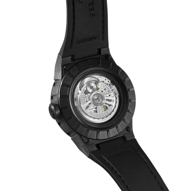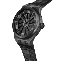 Decked out in black from head to toe, the "Turbine Carbon Black Edition" fully meets the expectations of watch enthusiasts who love bold yet classic and refined designs. To achieve the "Total Black" look, the case, the dial, the iconic turbine, and the strap are dyed black. Due to its extreme lightness, this material is very pleasant on the wrist. It is also robust and boasts excellent thermal insulation capacity and resistance to chemicalagents and temperature variations. On the other hand, the bezel and case back are made of matte black PVD-coated stainless steel.