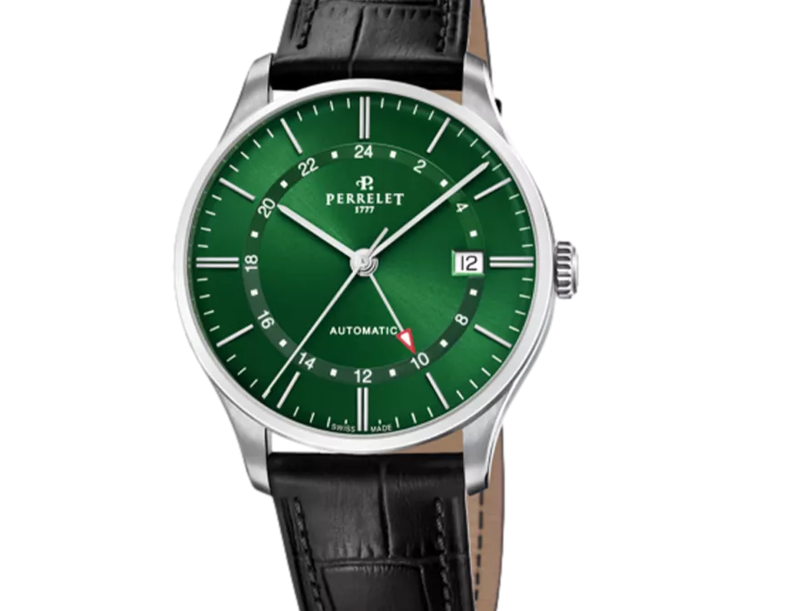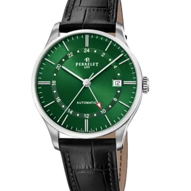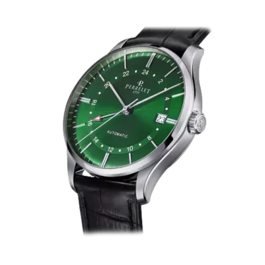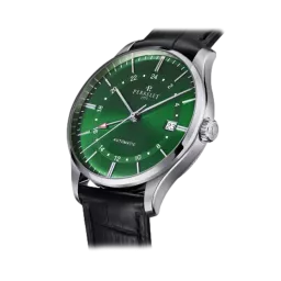 The green watch face gives this timepiece elegance and an outstanding, eye-catching personality.