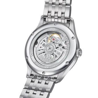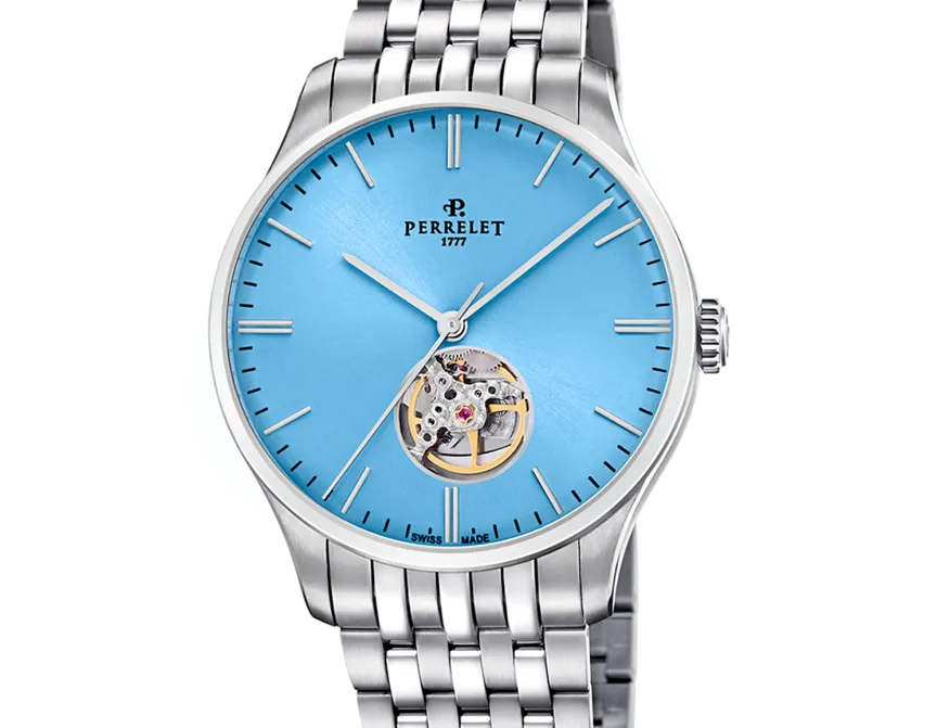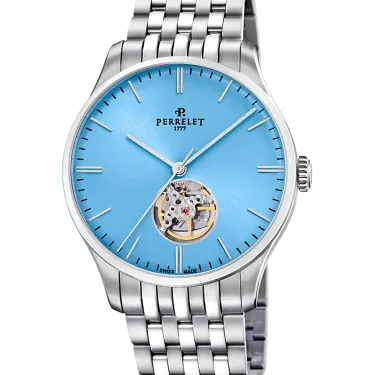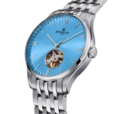 This piece is presented with a diameter of 39 mm and a thickness of only 9.56 mm, adapting perfectly even to the smallest wrists. Surely she will not be able to resist the temptation to show off its sophisticated and cared-for aesthetics. Equipped with a stainless steel bracelet and a hidden clasp signed with the Perrelet logo, this piece is a perfect and balanced ensemble to wear at any time.