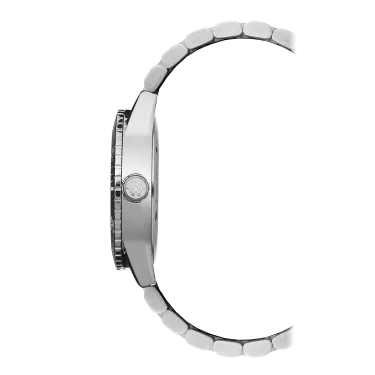 The folding clasp of the stainless steel bracelet has a double push-security system and an integrated steel diver extension that allows for easy strap width adjustment.