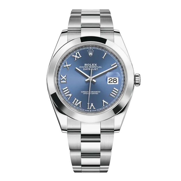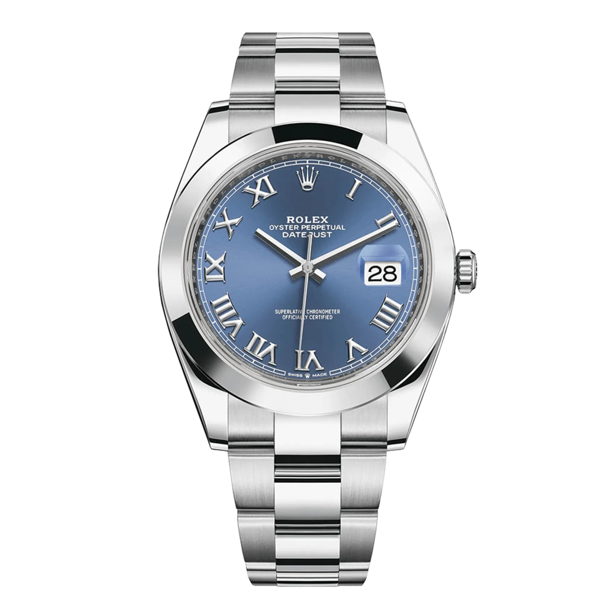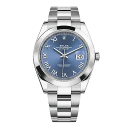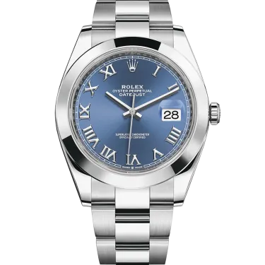 Rolex Datejust 41 126300 Movement : Automatic Case size : 41mm Case material : Steel Bracelet material : Steel (Oyster) Dial type : Blue Roman Numeral Water resistance : 100 Metres