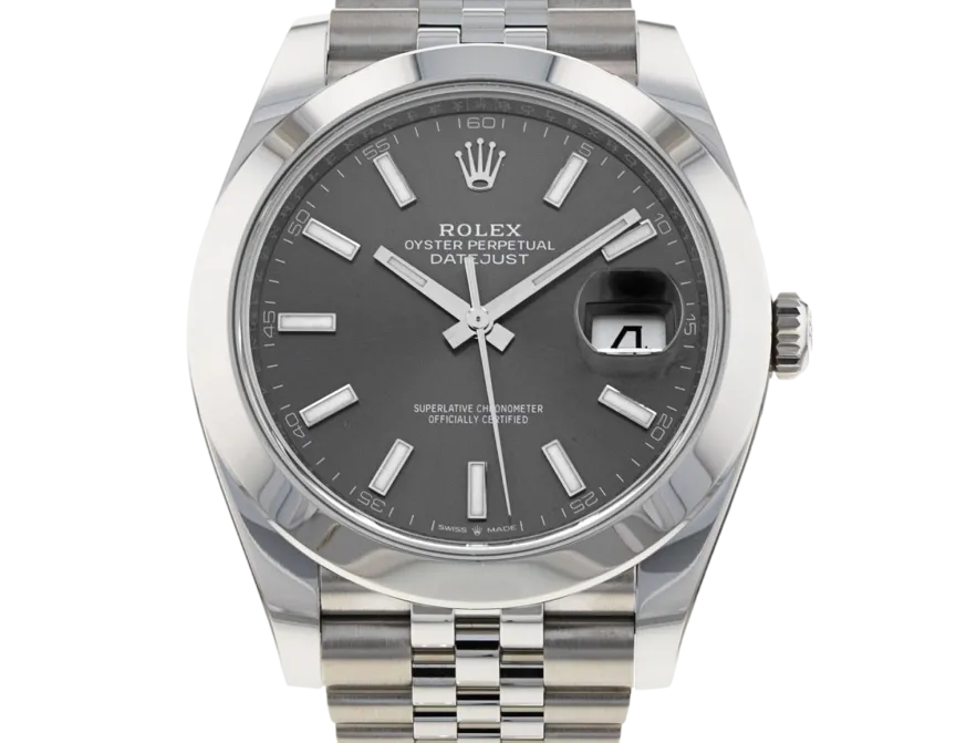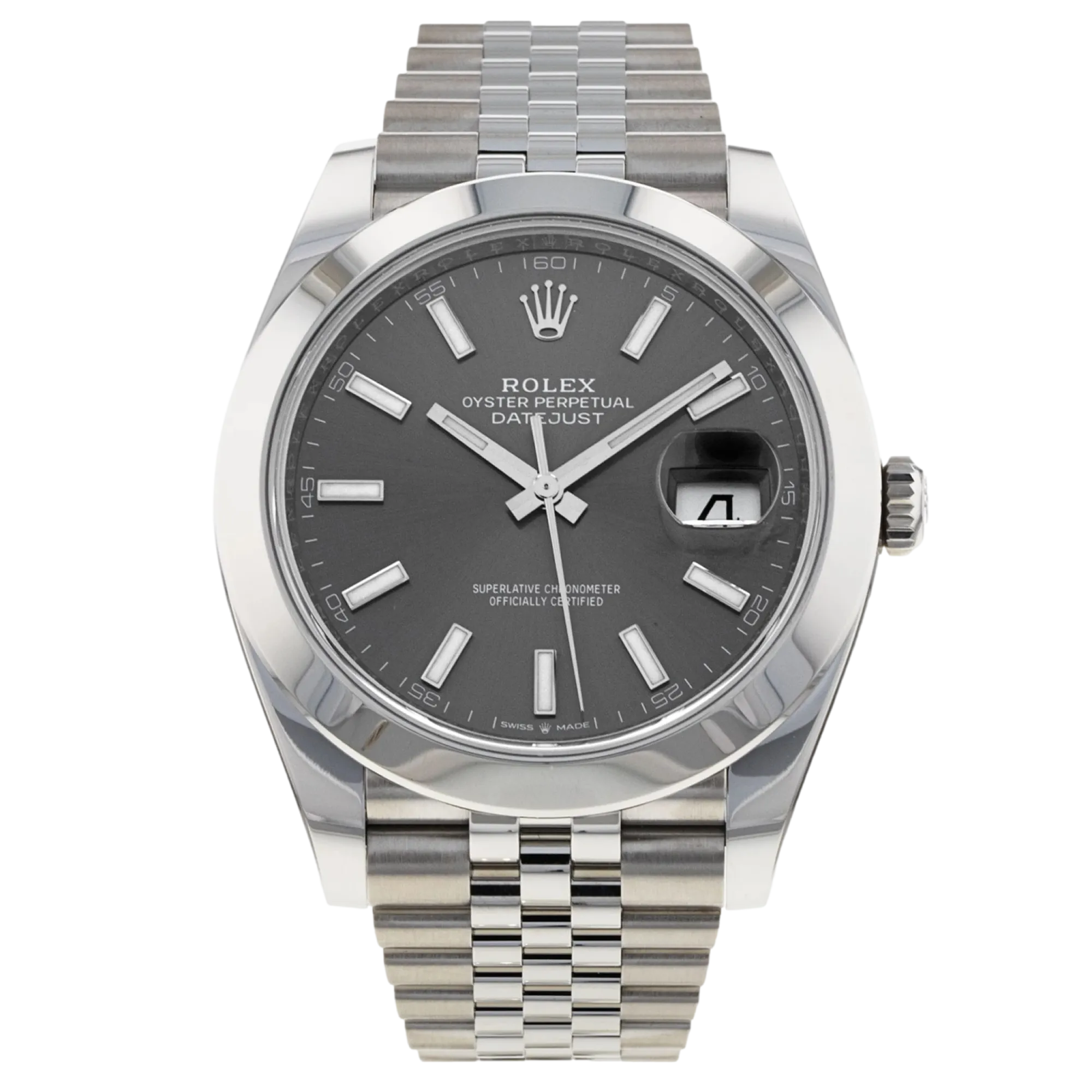 Rolex Datejust 41 126300 Movement : Automatic Case size : 41mm Case material : Steel Bracelet material : Steel (Jubilee) Dial type : Slate Baton Water resistance : 100 Metres