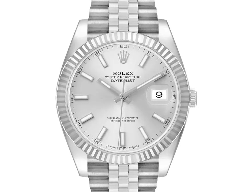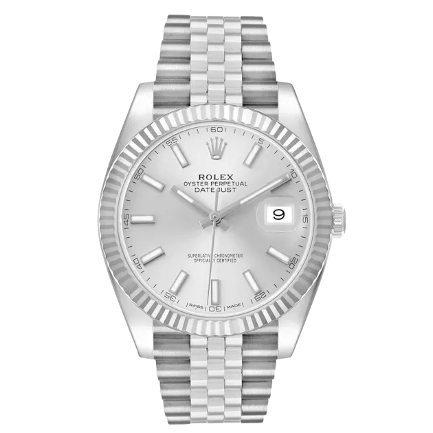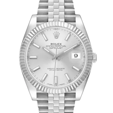 Rolex Datejust 41 126334 Movement : Automatic Case size : 41mm Case material : Steel & White Gold Bracelet material : Steel (Jubilee) Dial type : Silver Baton Water resistance : 100 Metres