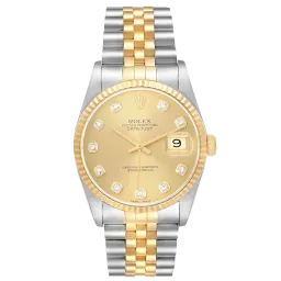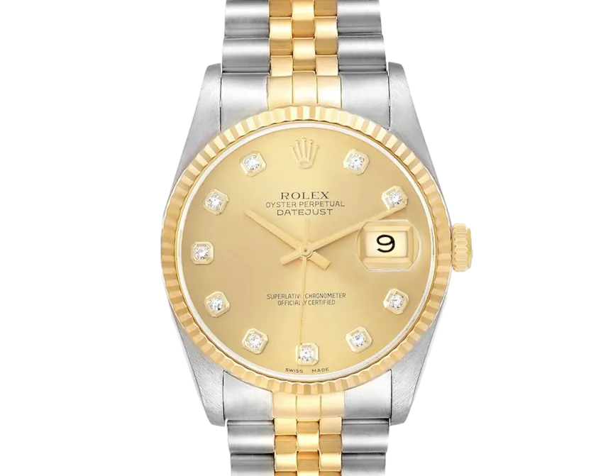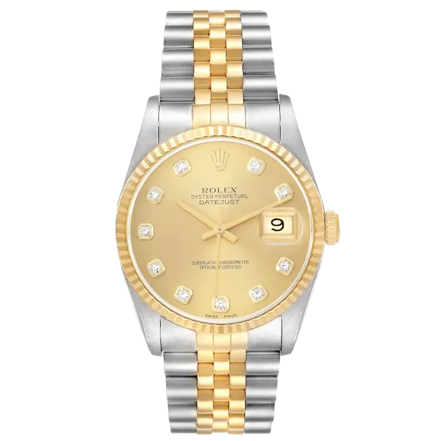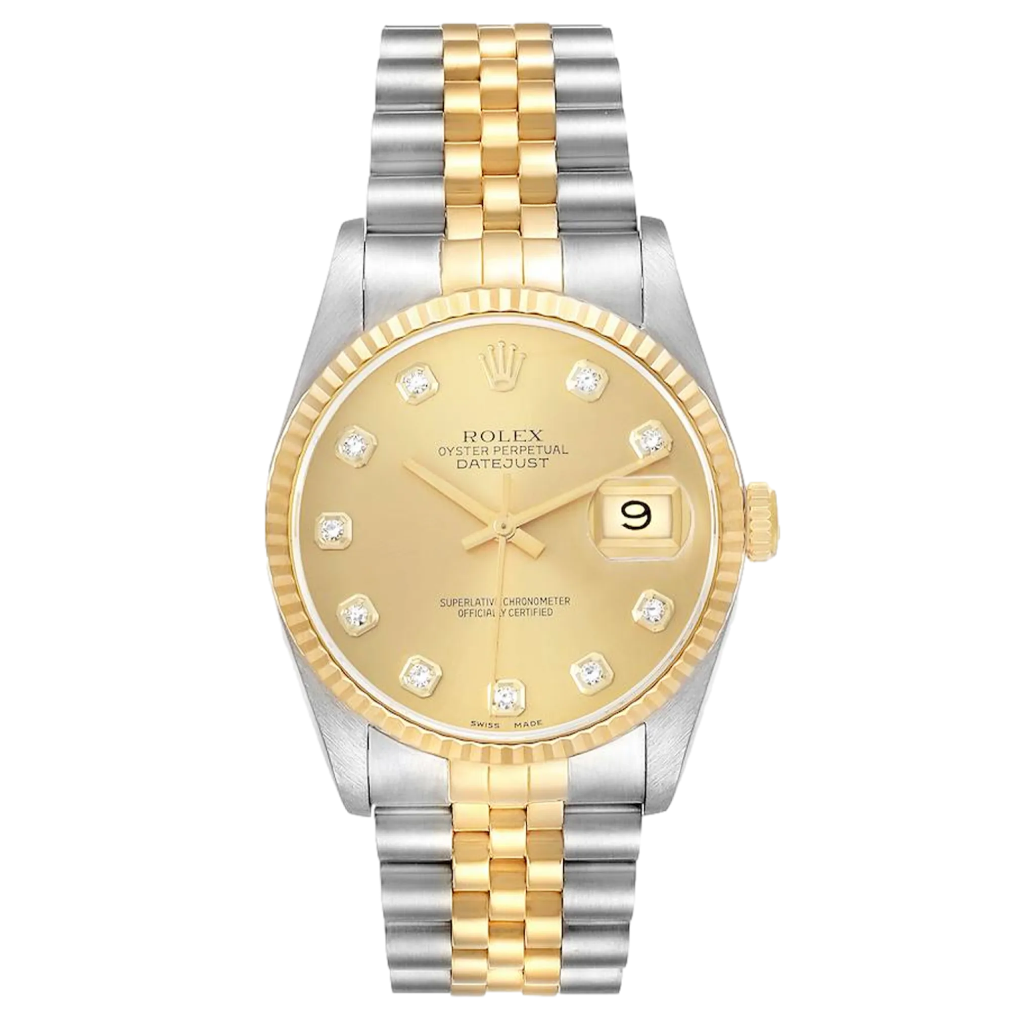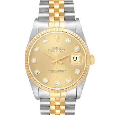Rolex Datejust 16233 36 mm, Gold/Stainless steel case and Jubilee strap, Yellow gold bezel, Fold clasp, Champagne dial, Automatic movement, Movement/Caliber 3135, 10 ATM water resistance with original box, original papers and is in perfect working conditions. This watch has been checked, certified and carried out the water resistance test and has 2-year warranty from the date of purchase.