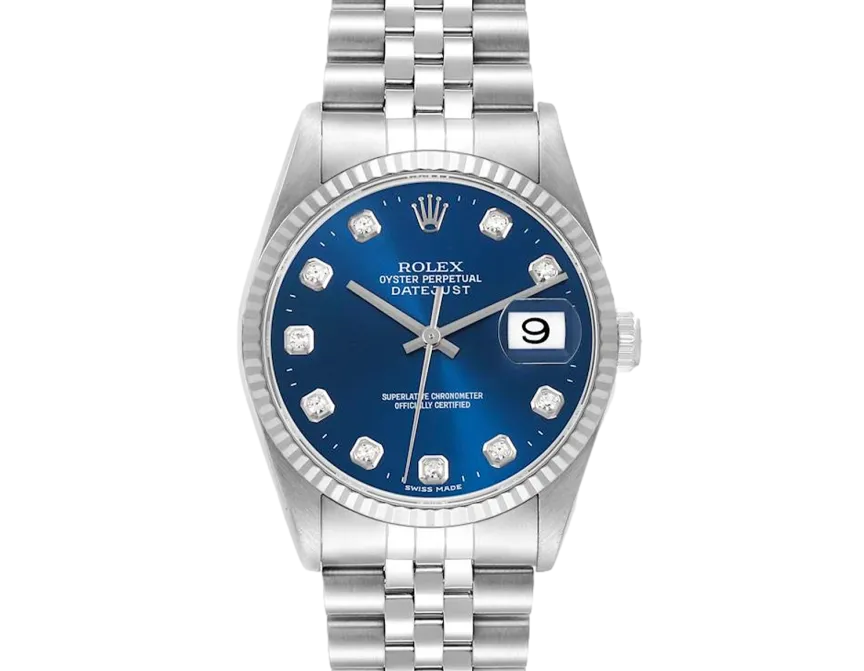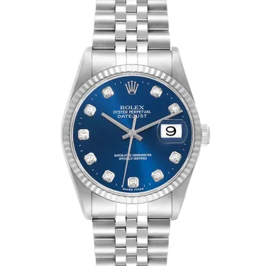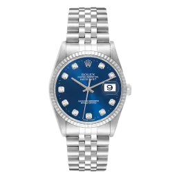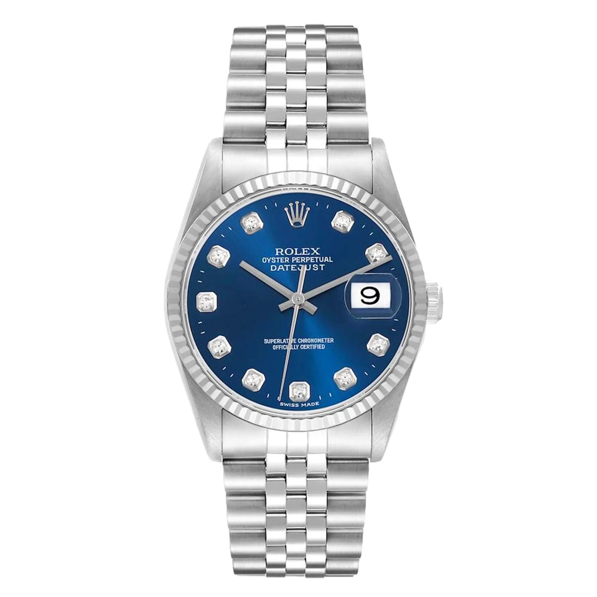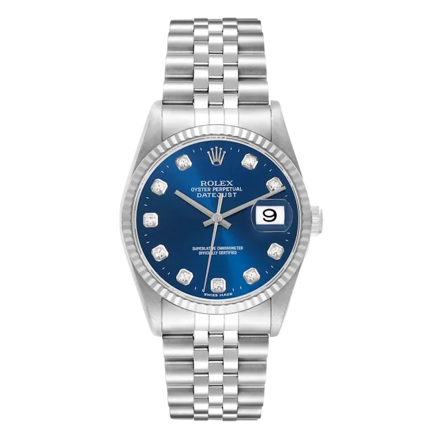 Rolex Datejust 16234 36 mm, Stainless steel case and Jubilee strap, White gold bezel, Fold clasp, Blue dial, Automatic movement, Movement/Caliber 3135, 10 ATM water resistance with original box, original papers and is in perfect working conditions. This watch has been checked, certified and carried out the water resistance test and has 2-year warranty from the date of purchase.