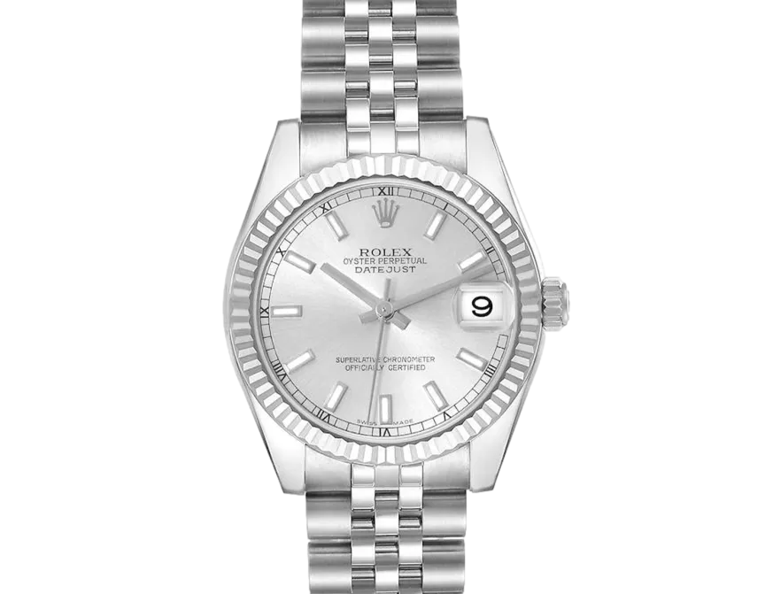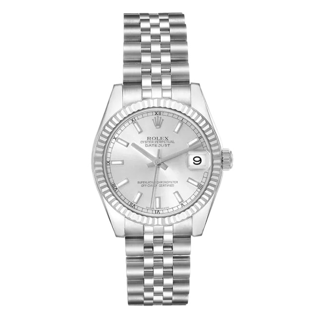 Rolex Datejust 178274 31 mm, Stainless steel case and jubilee strap, White gold bezel, Fold clasp, Silver dial, Automatic movement, Movement/Caliber 2235, 10 ATM water resistance with original box, original papers and is in perfect working conditions. This watch has been checked, certified and carried out the water resistance test and has 2-year warranty from the date of purchase.