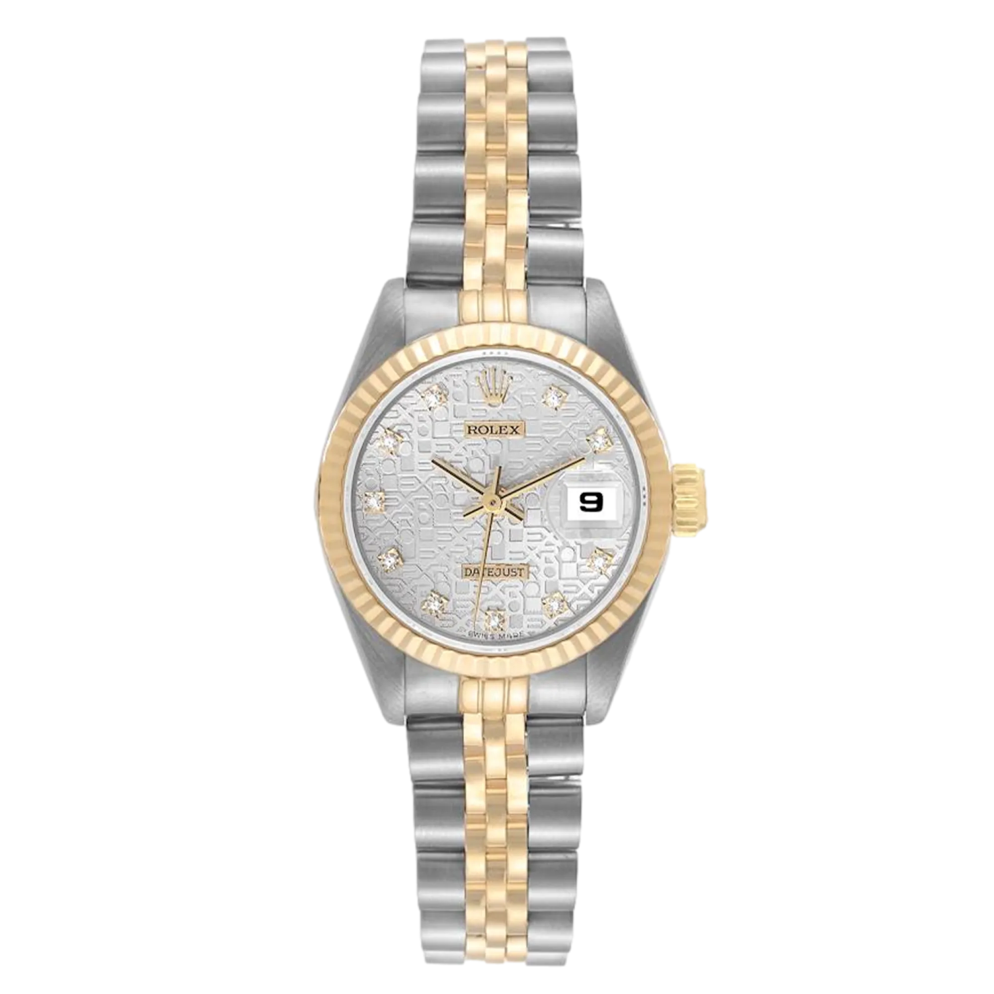 Rolex Datejust 69173 26 mm, Gold/Stainless steel case and Jubilee strap, Yellow gold bezel, Fold clasp, Silver diamond dial, Automatic movement, Movement/Caliber 2135, 10 ATM water resistance with original box, original papers and is in perfect working conditions. This watch has been checked, certified and carried out the water resistance test and has 2-year warranty from the date of purchase.