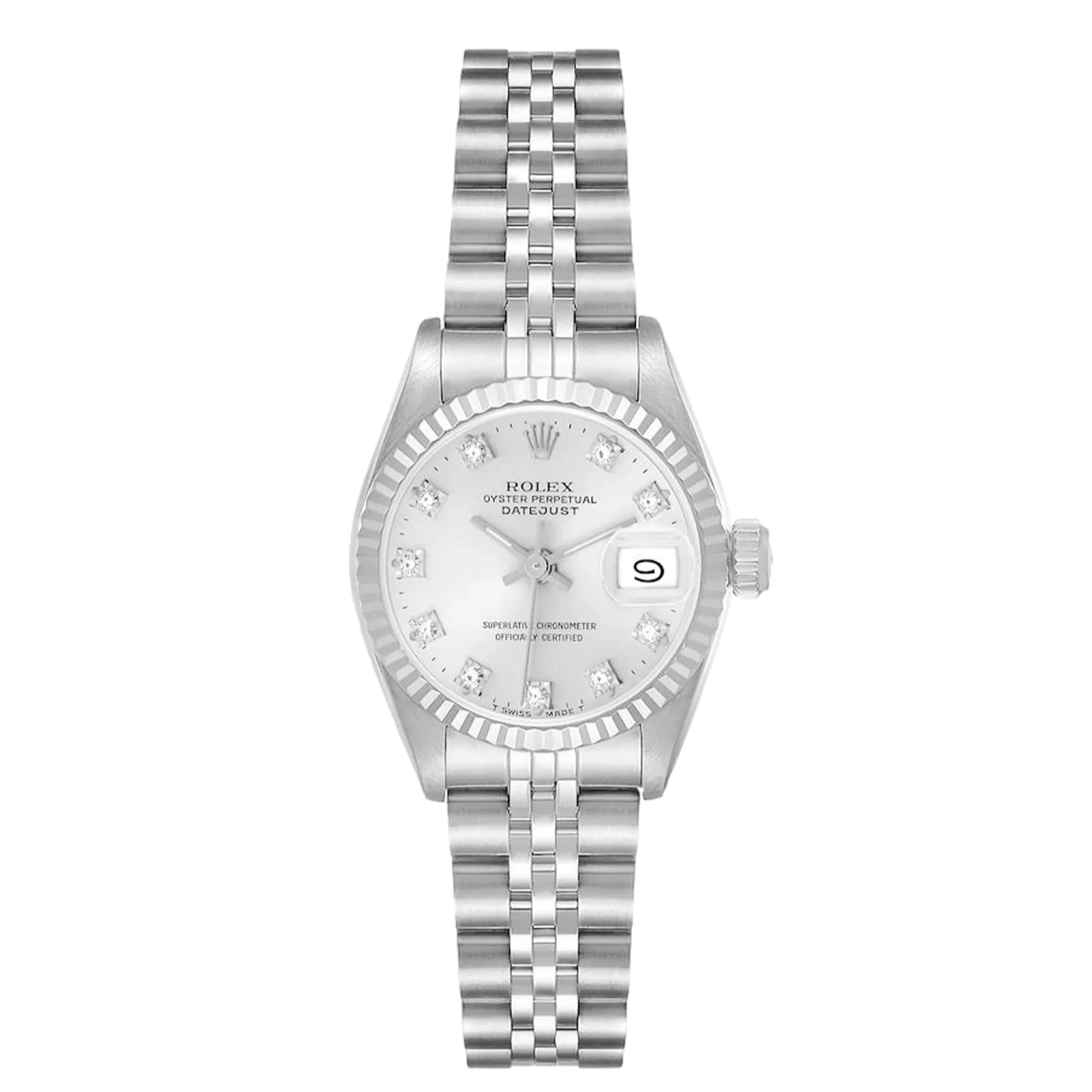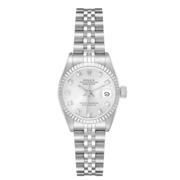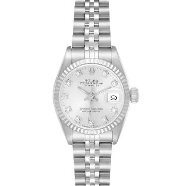 Rolex Datejust 69174 26 mm, Stainless steel case and Jubilee strap, White gold bezel, Fold clasp, Silver diamond dial, Automatic movement, Movement/Caliber 2135, 10 ATM water resistance with original box, original papers and is in perfect working conditions. This watch has been checked, certified and carried out the water resistance test and has 2-year warranty from the date of purchase.