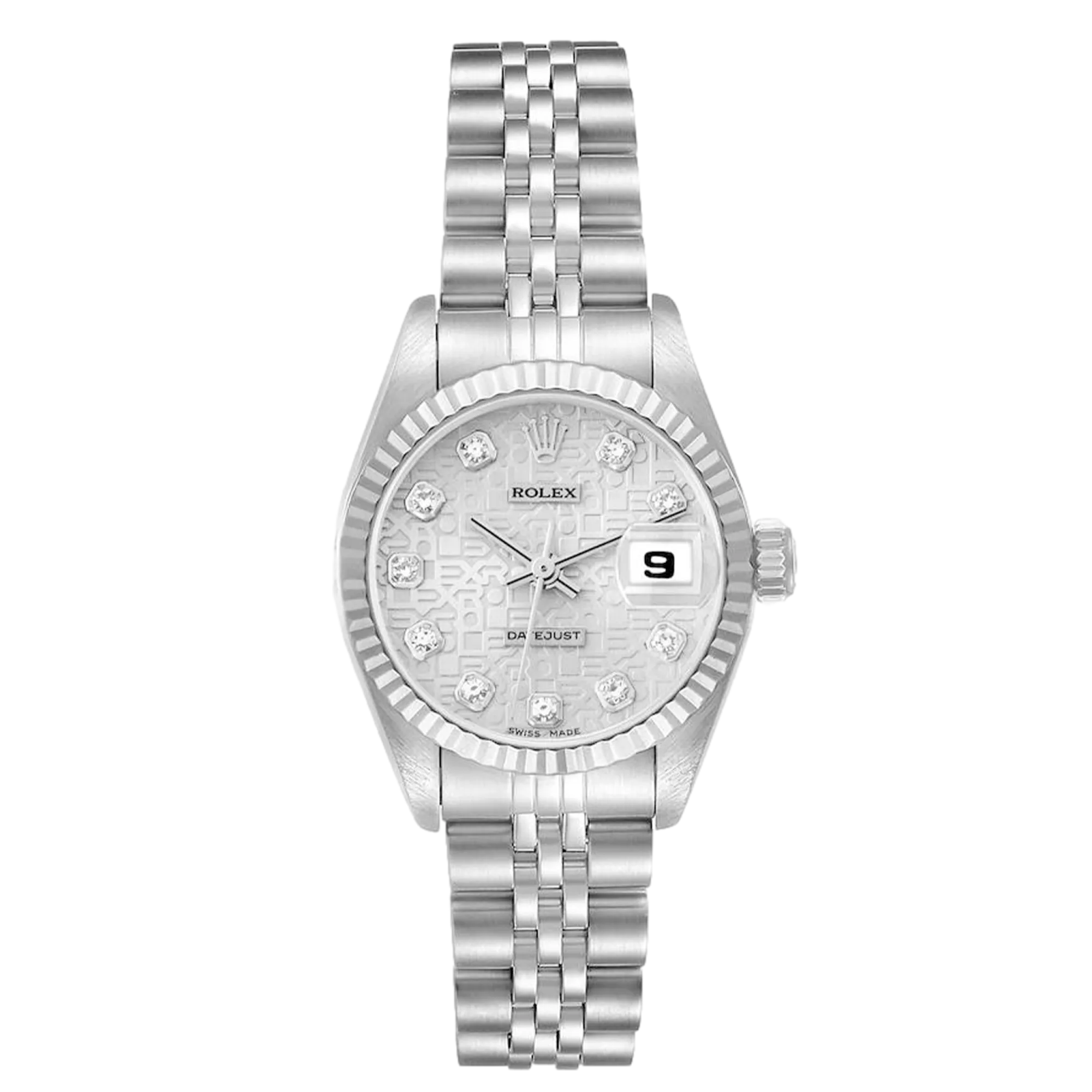 Rolex Datejust 69174 26 mm, Stainless steel case and Jubilee strap, White gold bezel, Fold clasp, Silver diamond dial, Automatic movement, Movement/Caliber 2135, 10 ATM water resistance with original box, original papers and is in perfect working conditions. This watch has been checked, certified and carried out the water resistance test and has 2-year warranty from the date of purchase.