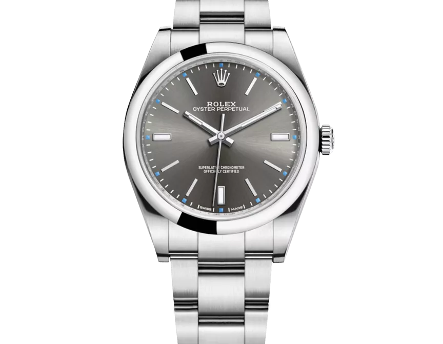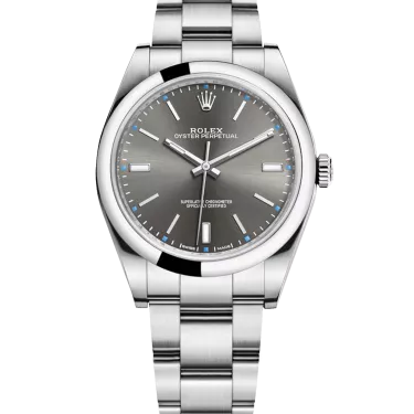 Rolex Oyster Perpetual 114300 39 mm, Stainless steel case, bezel and oyster strap, Fold clasp, Grey dial, Automatic movement, Movement/Caliber 3132, 10 ATM water resistance with original box, original papers and is in perfect working conditions. This watch has been checked, certified and carried out the water resistance test and has 2-year warranty from the date of purchase.