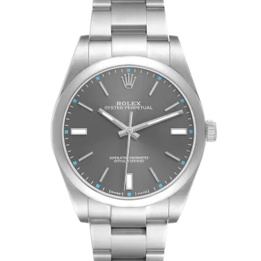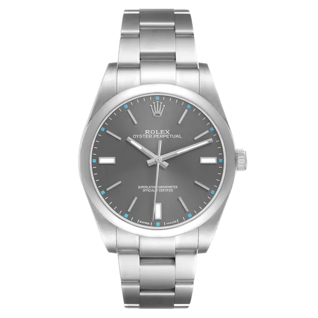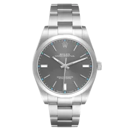Rolex Oyster Perpetual 114300 39 mm, Stainless steel case, bezel and oyster strap, Fold clasp, Grey dial, Automatic movement, Movement/Caliber 3132, 10 ATM water resistance with original box, original papers and is in perfect working conditions. This watch has been checked, certified and carried out the water resistance test and has 2-year warranty from the date of purchase.