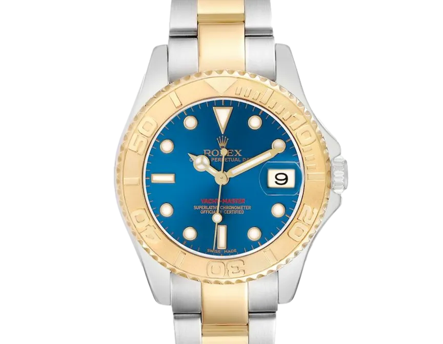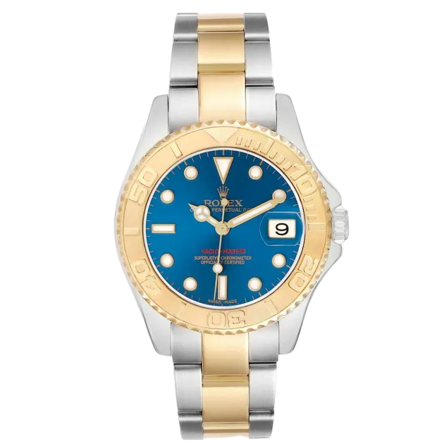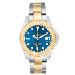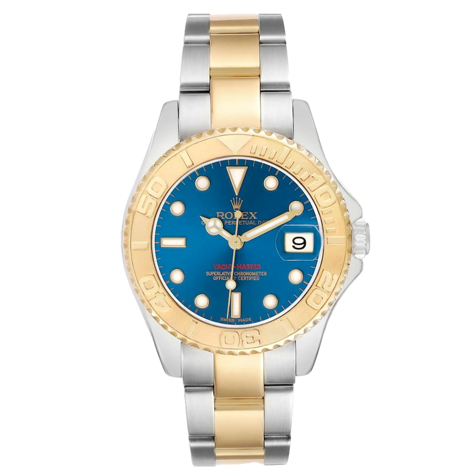 Rolex Yacht-Master 168623 35 mm, Gold/Stainless steel case and oyster strap, Yellow Gold bezel, Fold clasp, Blue dial, Automatic movement, Movement/Caliber 2235, 10 ATM water resistance with original box, original papers and is in perfect working conditions. This watch has been checked, certified and carried out the water resistance test and has 2-year warranty from the date of purchase.