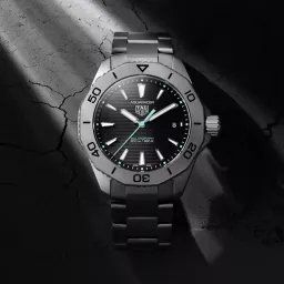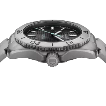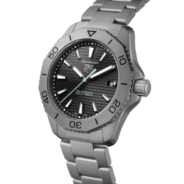 Harnessing the sun’s boundless energy or any artificial light source, the Calibre TH50-00 Solargraph equips this distinctive 40mm TAG Heuer Aquaracer. The ultra-light titanium grade 2 case and bracelet combine perfectly with the black sunray brushed dial showing polar blue color touches. A reliable, pressure-proof companion.