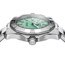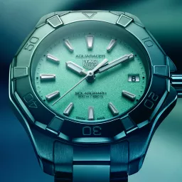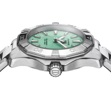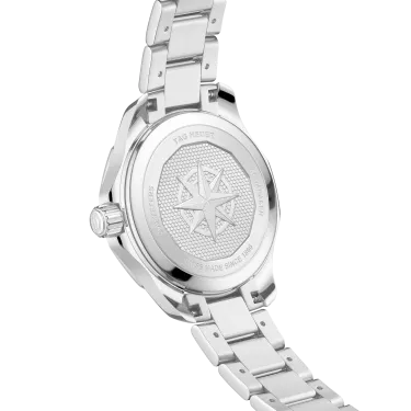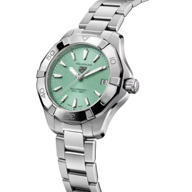 Go further than ever with this polar blue-accented TAG Heuer Aquaracer. Its turquoise sunray brushed dial, enhanced with Super-LumiNova®, ensures maximal legibility in all conditions. Equipped with a 34 mm steel case and bracelet, water-resistant to 200 meters, it’s a versatile choice for the modern explorer.