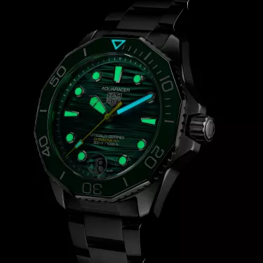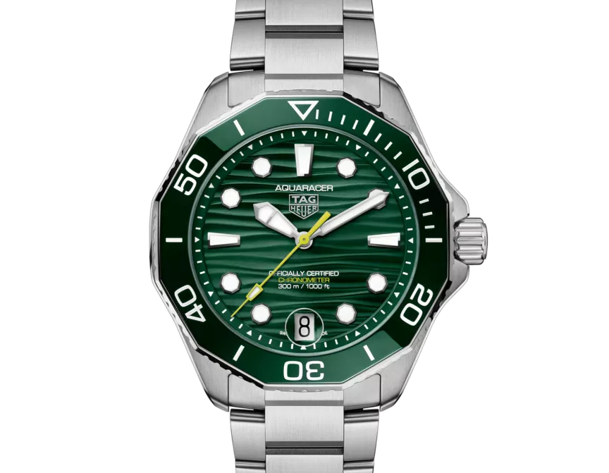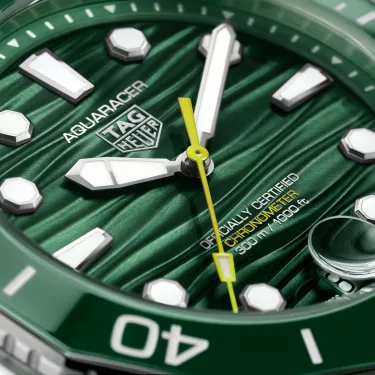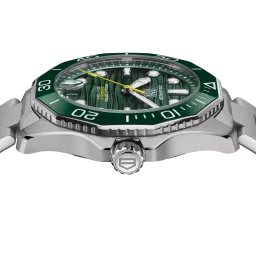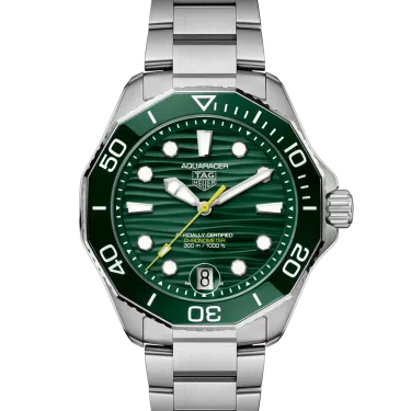 Set sail with this TAG Heuer Aquaracer Professional 300, a 42mm watch that epitomizes maritime resilience. Integrating a green sunray brushed dial and ceramic bezel, and powered by the COSC-certified Calibre TH31-00 offering 80 hours of power reserve, this versatile watch is designed to endure the most ambitious sea explorations.