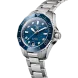 Driven by the Calibre 5 automatic movement, the TAG Heuer Aquaracer is the ultimate dive watch. An exciting, blue-lacquered dial with wavy finishing matches the unidirectional ceramic bezel, with eight VS diamonds (0.078ct) highlighting its elegance. Raising the bar for versatility, a new 36mm slim case blends sporty looks, robust design, and sharp geometry. A Heavy-duty watch, water-resistant to 300 meters, with a tapered steel bracelet secured by safety push buttons on the buckle, and a fine adjustment system.