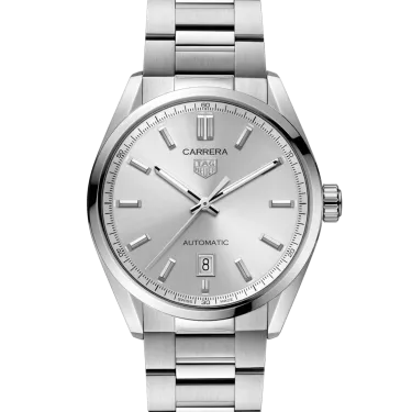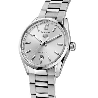 Confident and driven, this TAG Heuer Carrera is up for any challenge. Its bold, brushed silver sunray dial offers the ultimate urban look, complemented by functional Super-LumiNova® hands and indexes. Taking its distinctive design from the original TAG Heuer Carrera, the 39mm steel case and bracelet have been deliberately refined for better ergonomics. This elegant three-handed automatic watch is the ideal everyday ally. Built for performance, the technical construction of TAG Heuer Carrera guarantees 100m of water resistance.