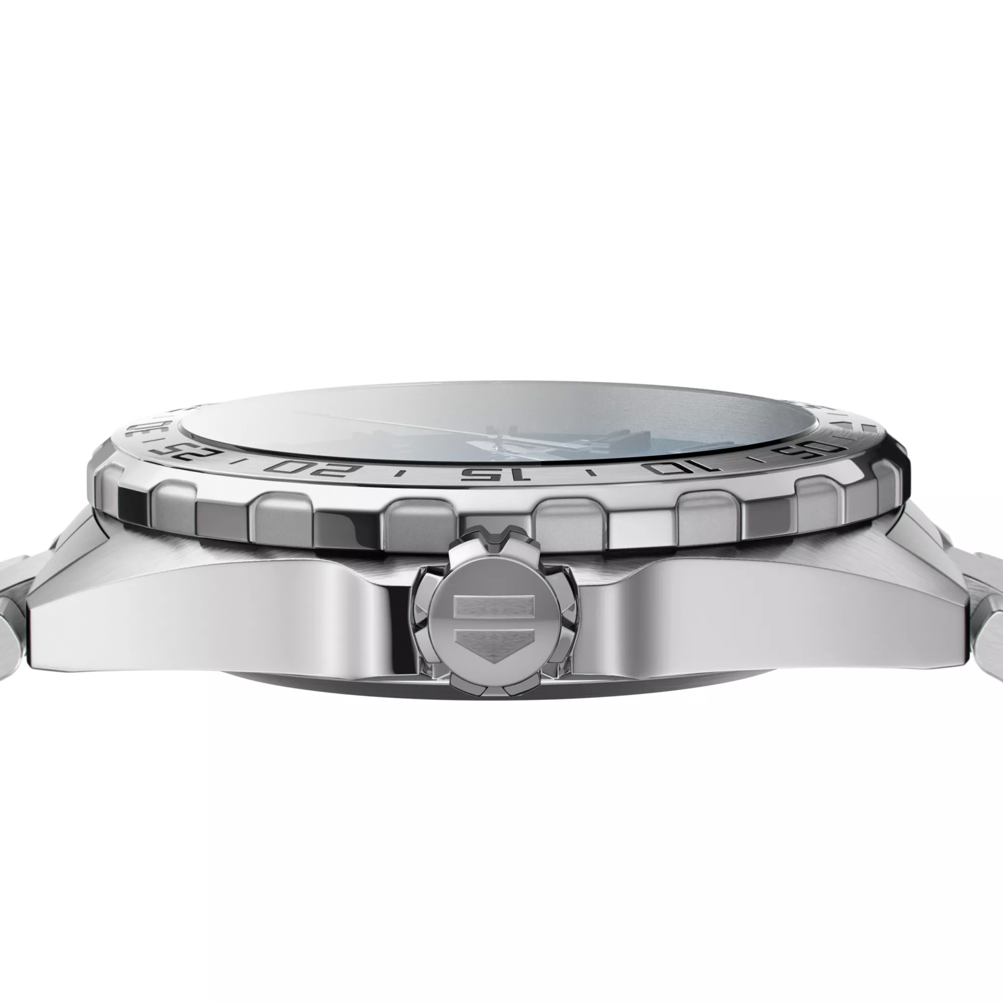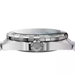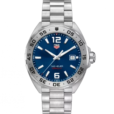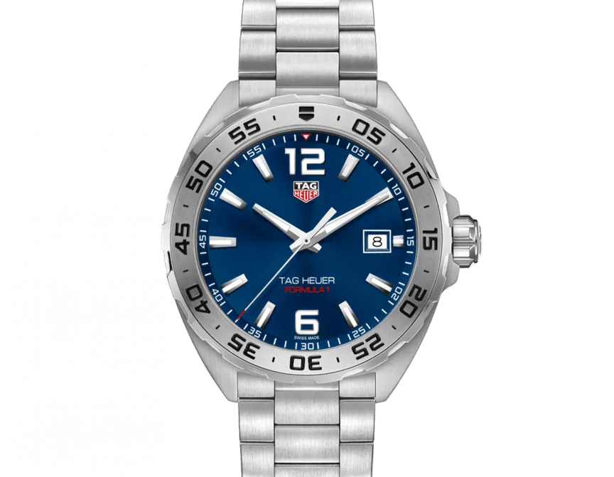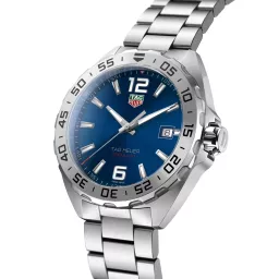 The adventure-seeker’s watch, this 41mm TAG Heuer Formula 1 pairs super-functionality with handsome appeal. The magnetic blue dial is a shimmering foil for the TAG Heuer shield and bold, luminescent hour markers and hands. It is framed by a 60-minute scale unidirectional turning bezel and fitted with a superbly forged steel bracelet with safety clasp and extension for perfect fit over a racing suit.