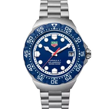 Inspired by the original Series 1 watch, the TAG Heuer Formula 1 Solargraph in 38mm expands the energetic aesthetic with a vibrant blue dial and sleek design. Combining a playful style with functionality, this solar-powered timepiece is made for trendsetters who value both style and innovation.