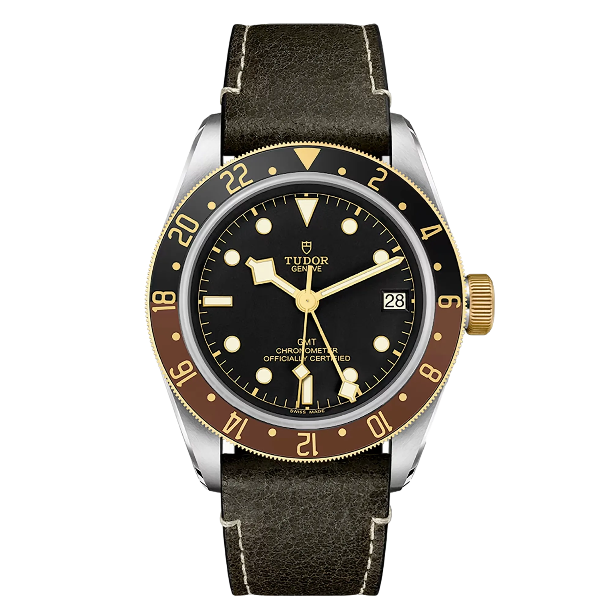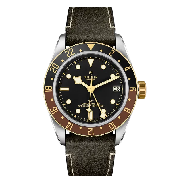Tudor Black Bay GMT M79833MN-0003 Movement : Automatic Case size : 41mm Case material : Steel & Yellow Gold Bracelet material : Calf - Brown Dial type : Black Water resistance : 200 Metres