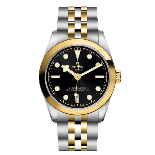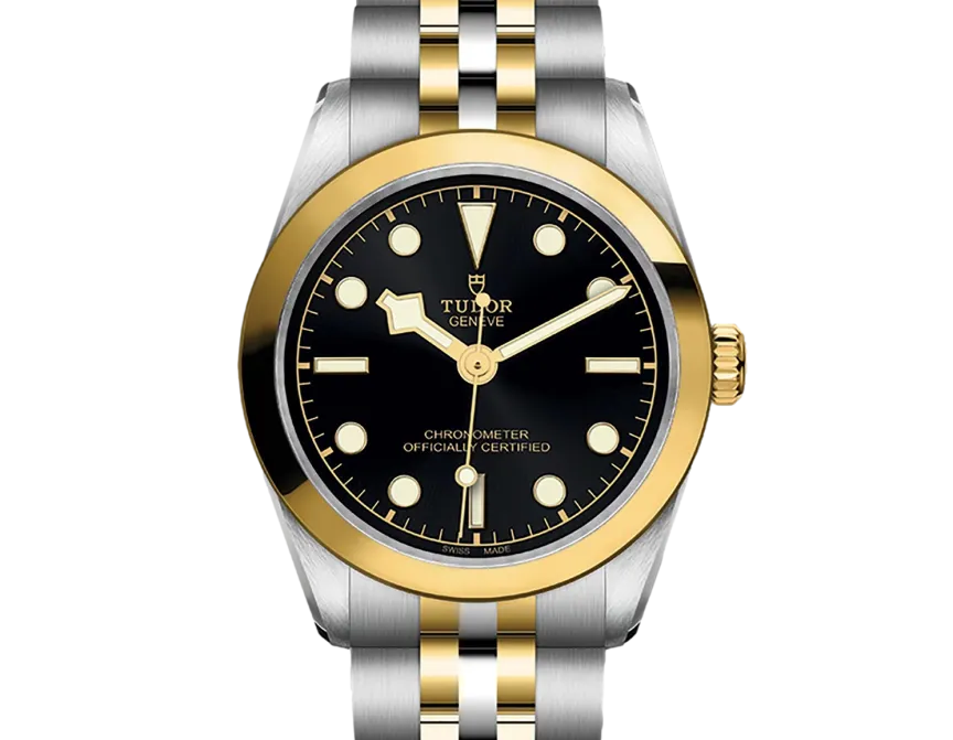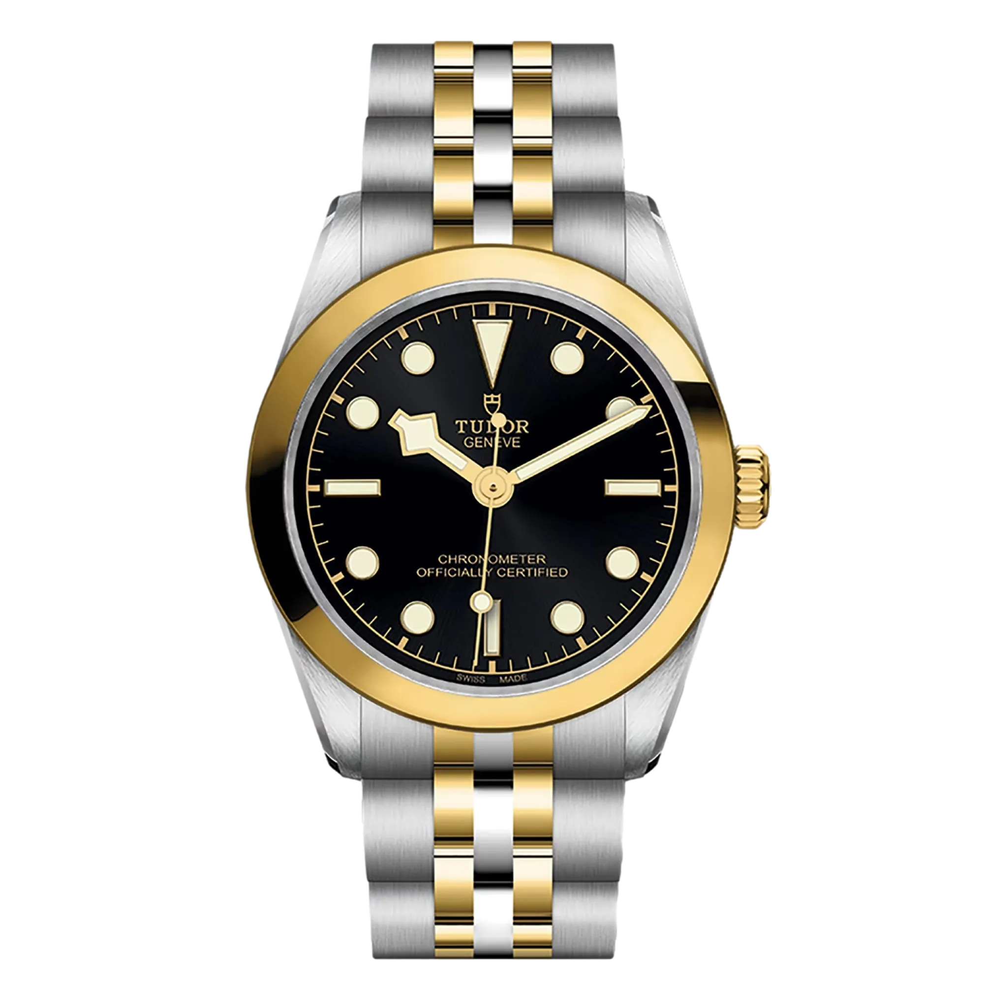 Tudor Black Bay M79503-0001 Movement : Automatic Case size : 36mm Case material : Steel & Yellow Gold Bracelet material : Steel & Yellow Gold Dial type : Black Baton Water resistance : 150 Metres