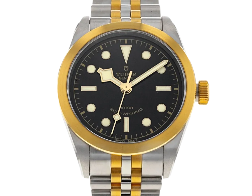 Tudor Black Bay M79503-0001 Movement : Automatic Case size : 36mm Case material : Steel & Yellow Gold Bracelet material : Steel & Yellow Gold Dial type : Black Baton Water resistance : 150 Metres