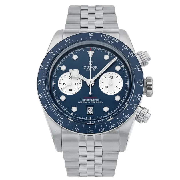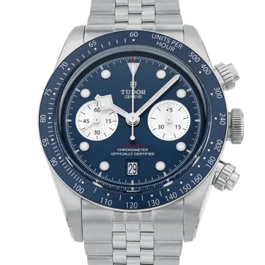Tudor Black Bay Chrono M79360b-0002 Movement : Automatic Case size : 41mm Case material : Steel Bracelet material : Steel Dial type : Blue Water resistance : 200 Metres