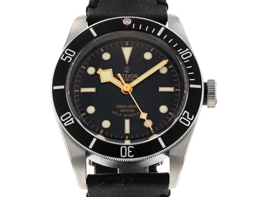 Tudor Heritage Black Bay 79220N Movement : Automatic Case size : 41mm Case material : Steel Bracelet material : Leather - Black Dial type : Black Water resistance : 200 Metres