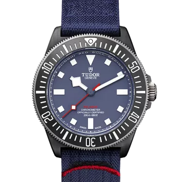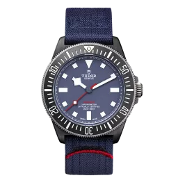 Tudor Pelagos FXD M25707KN-0001 Movement : Automatic Case size : 42mm Case material : Carbon Bracelet material : Fabric - Blue Dial type : Blue Baton Water resistance : 200 Metres