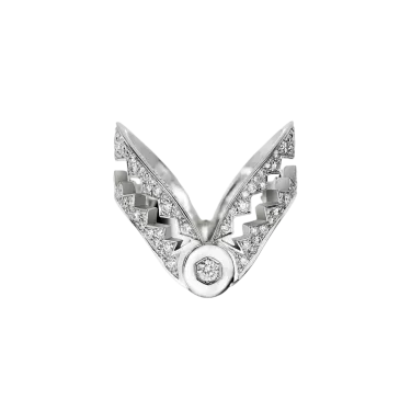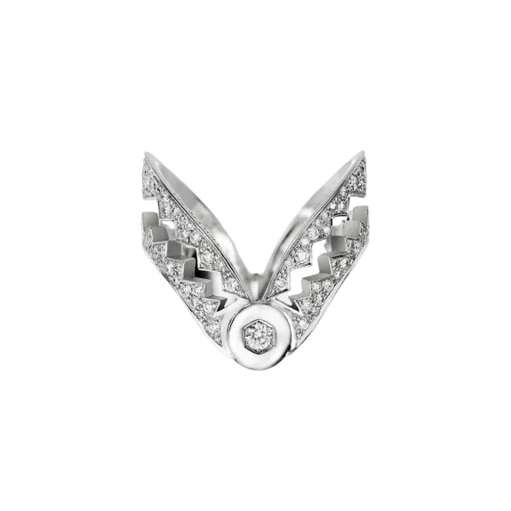 Dans sa version incurvée semi diagonale la bague Capture Me autorise quatre portés à l’allure insolente. Et un secret de diamants…