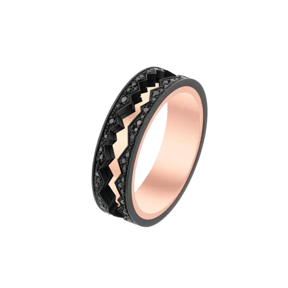 Capture In Motion est une collection mixte d’anneaux tournants qui reprennent le graphisme en crocs acérés et asymétriques emblématique de la marque.